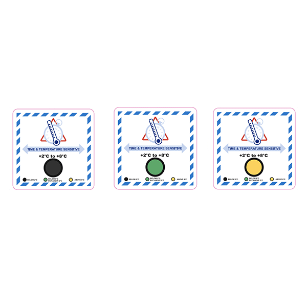Etiquette IATA spécifique au transport aérien pour produits sensibles avec indicateur de température intégré.